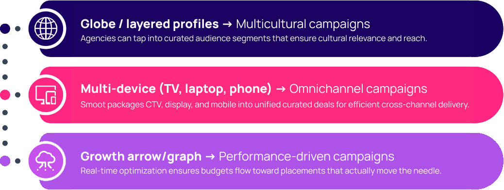 Instead of starting from scratch, agencies can activate curated deals directly in their DSPs which saves time, reduces risk, and drives stronger performance.